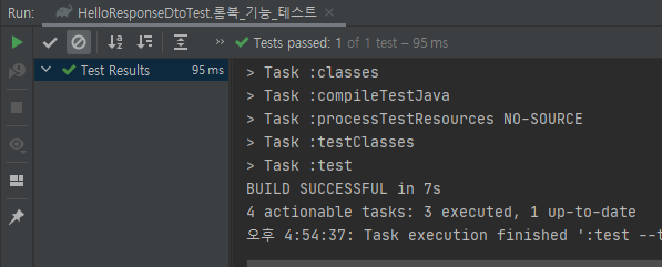 - 테스트 시 assertThat에 있는 값과 동등 비교 시 같을 때만 test 성공.