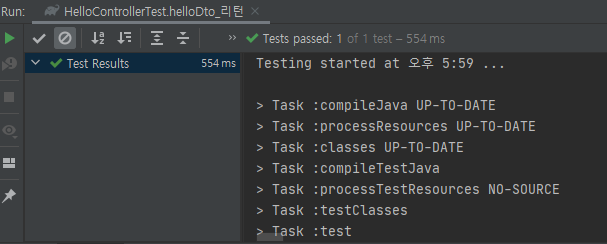 - MockMvc를 통해 /hello 주소로 get 요청을 테스트