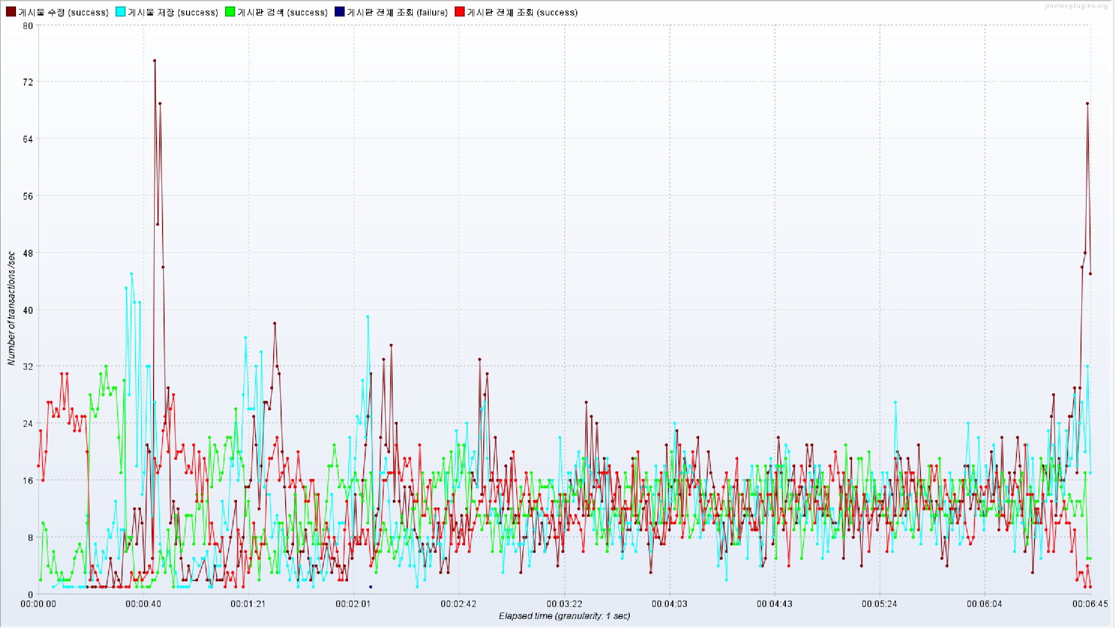 왼쪽 수치는 TPS(Transaction per second)로 보통 worst case를 동접 가능로 잡기 때문에 동시접속 약 500명을 커버한다고 볼 수 있다.